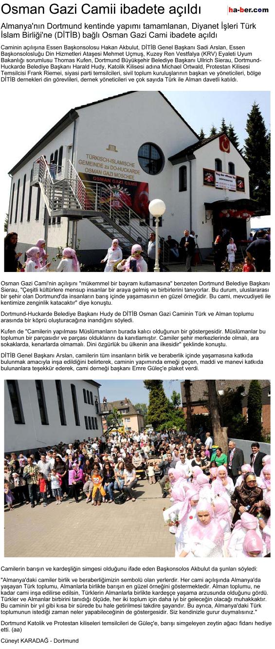 30.05.2010: ha-ber.com : „Osman Gazi Camii ibadete açıldı“